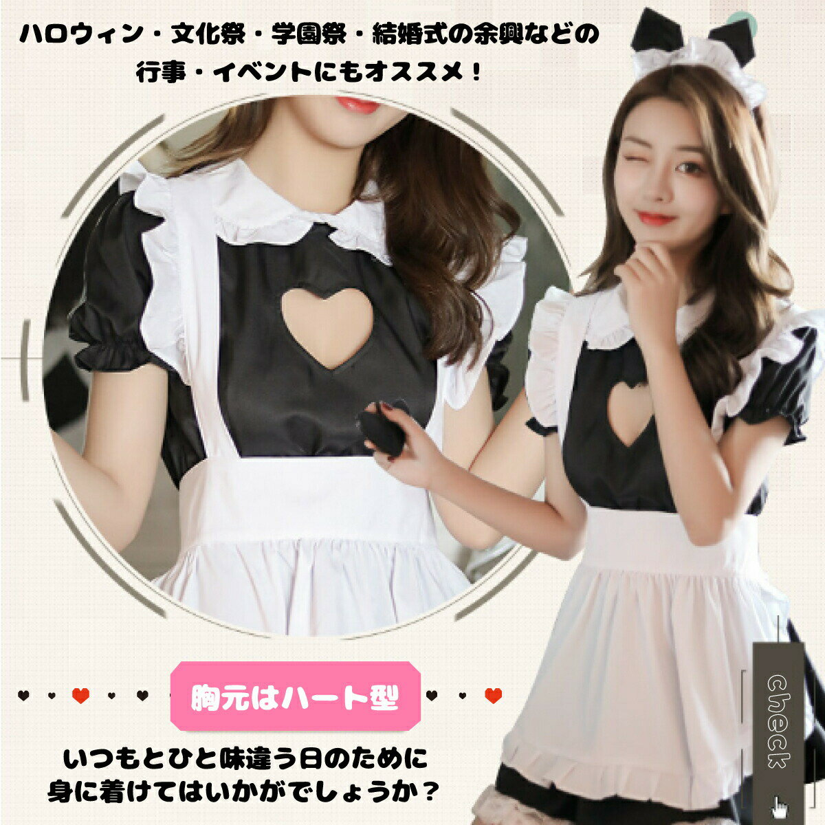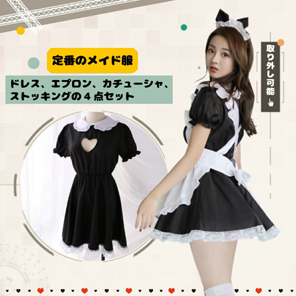 【店内全品P2倍!お得なクーポン有】 メイド服 コスプレ セクシー 可愛い メイド ロング 猫耳 仮装 レディース 半袖 クラシック ハロウィン フリル フリーサイズ ギフト